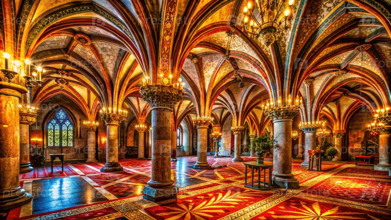 Большой арочный коридор в древнем замке
