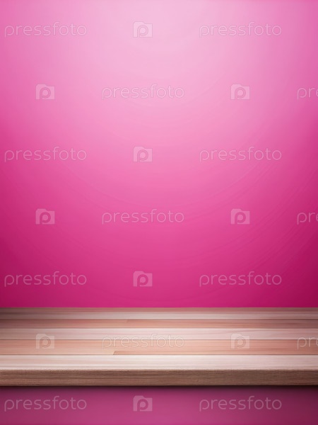 Пустой деревянный столешничный стол против розовой стены