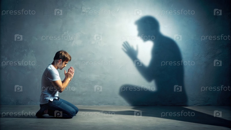 Имитация лицемерной молитвенной позы перед тенью