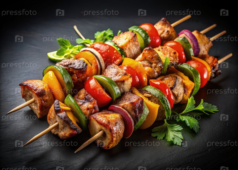 Вкусные жареные шиш-кебабы с овощами на косточках
