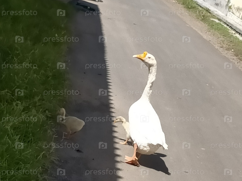 Семейные гуси на открытом воздухе