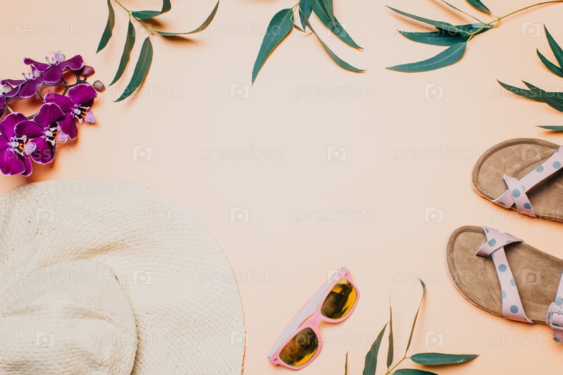 Бежевый фон с пляжными принадлежностями