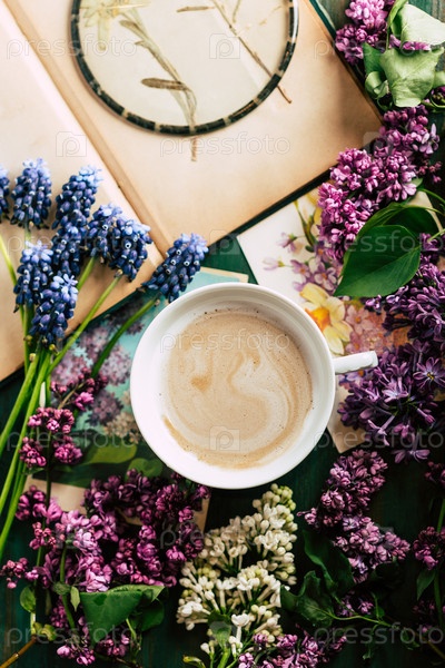 Натюрморт с кофе и весенними цветами