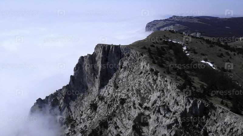 Скалистый горный хребет, возвышающийся над морем облаков
