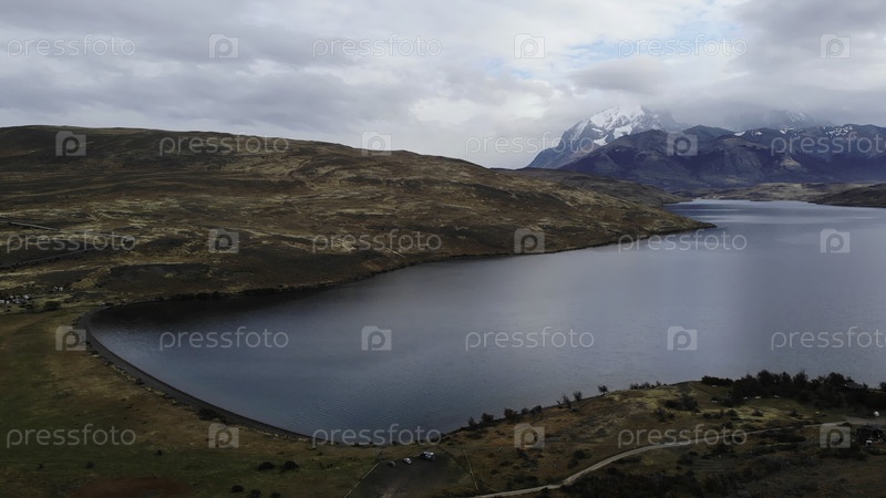Вид с воздуха на пейзаж гор и озер Патагонии.СМИ