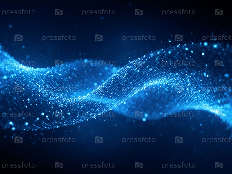 Жидкие голубые волны проникают в расширенное цифровое пространство, создавая эфирную атмосферу, которая воплощает суть беспрепятственного потока информации и коммуникации Генеративный ИИ