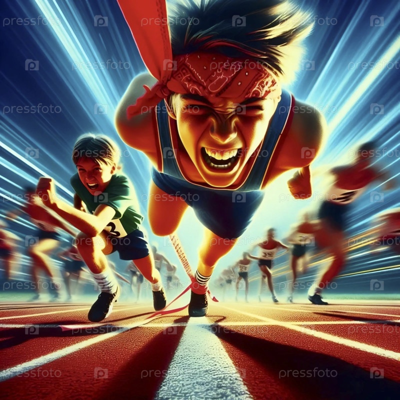 Динамический плакат детей, побеждающих в трёхногой гонке, Ai generated image