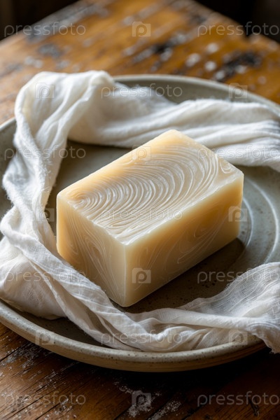 AI Generative Bar piece natural organic aromatic cosmetic handmade soap на тарелке на деревянном фоне