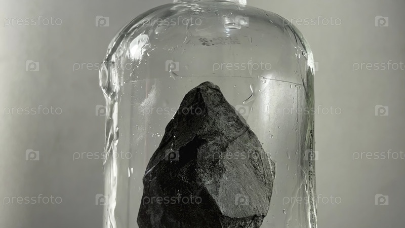Визуально поразительный черный минеральный образец изящно демонстрируется под красивым стеклянным куполом, усиливая его привлекательность