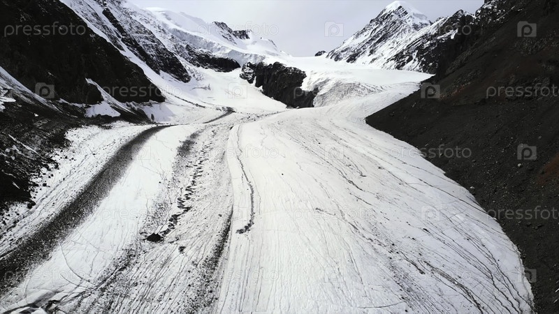 Ледник тает в горном хребте со снегом и льдом.СМИ