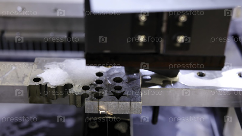 Промышленная лазерная резка металлической части на станке с ЧПУ.Медиа