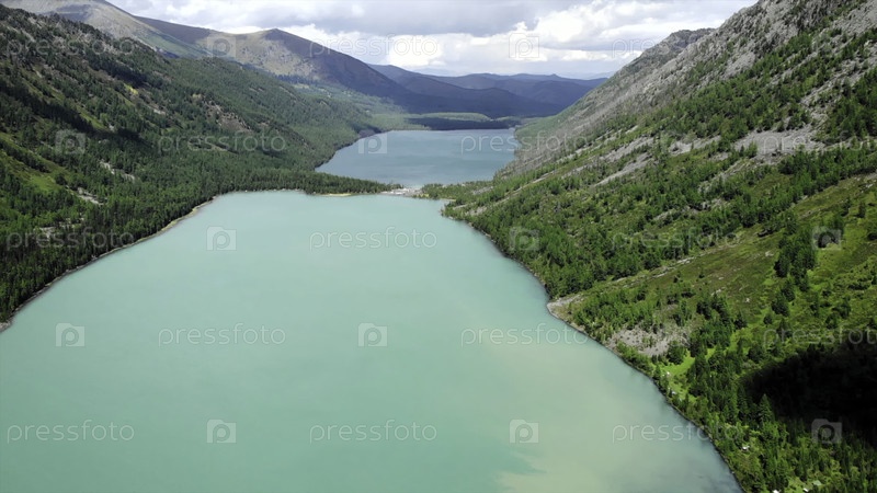 Бирюзовое озеро, извивающееся через горную долину