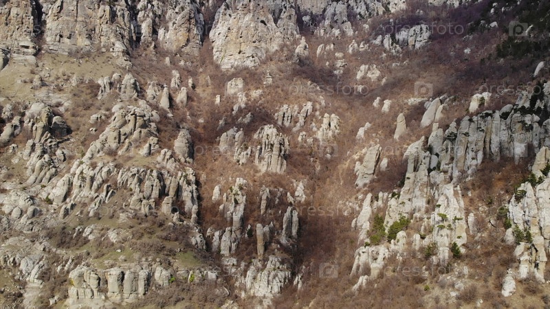 Вид с воздуха, летящий над странными скальными образованиями