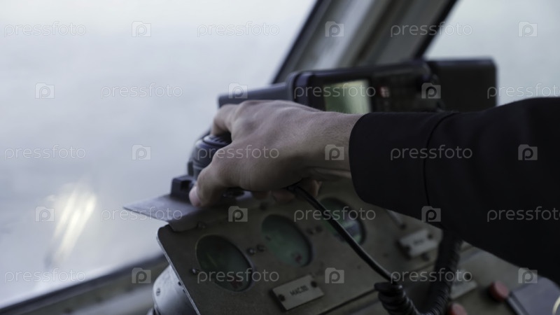 Капитан использует ВВФ-радио и регулирует элементы управления на мосту корабля
