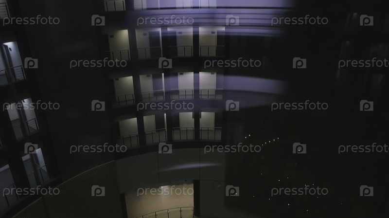 Увлекательный вид на современное здание с освещенными балконами, добавляя очарование к ночной атмосфере