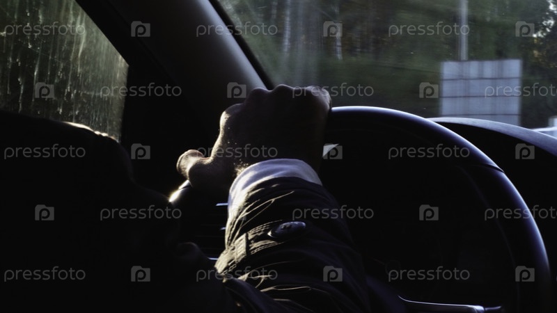 Вид через плечо водителя внутри машины