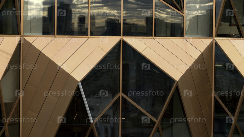 Аэрофотосъемка деталей нового небоскреба бронзового цвета.Фотоснимки.Современная архитектура делового района города