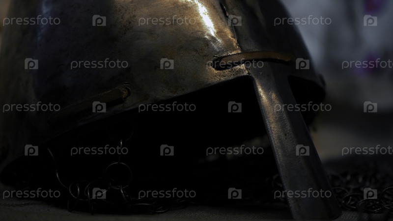 Древние русские доспехи СМИ Стол со старыми музейными экспонатами, лежащими рядом друг с другом Высококачественная запись 4k