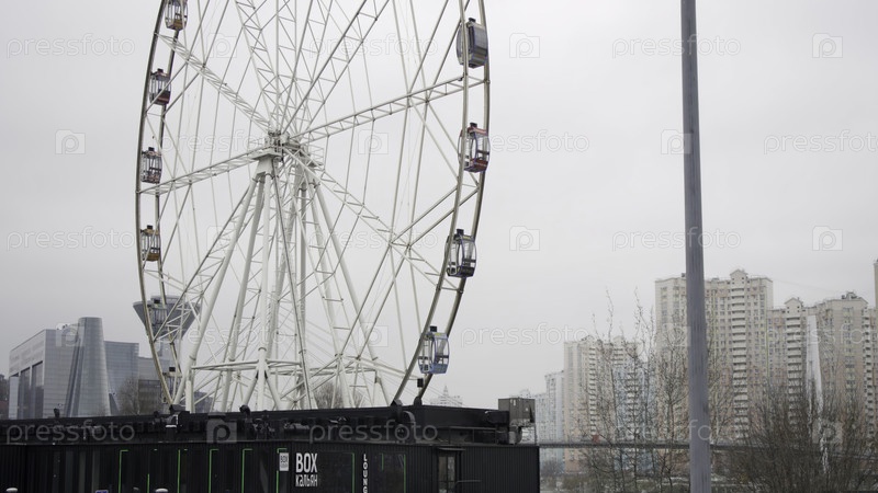 Великолепное колесо вращается медленно в пасмурный день в городе
