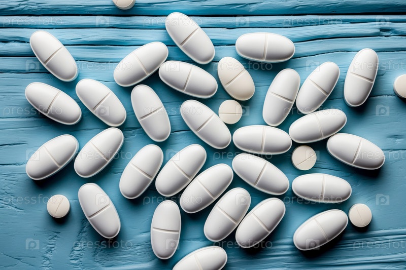 AI Generative Многие разные красочные медицинские витамины таблетки лекарства таблетки на синем фоне