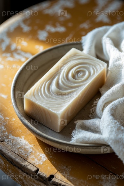AI Generative Bar piece natural organic aromatic cosmetic handmade soap на тарелке на деревянном фоне