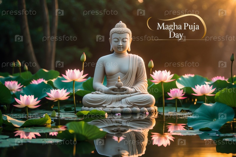 АИ генеративный день Магха-Пуджа традиционная буддийская карта поздравлений Тхеравады, Будды и учеников