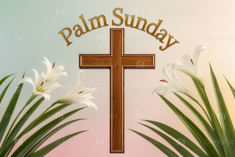 Поздравительная открытка для традиционного христианского празднования Пальмового воскресенья, Иисуса Христа в Иерусалиме AI Generative