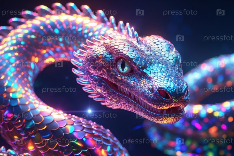 Фантастическое воображение рептильная змея с блестящей радужной кожей чешуи поверхностная текстура AI Generative