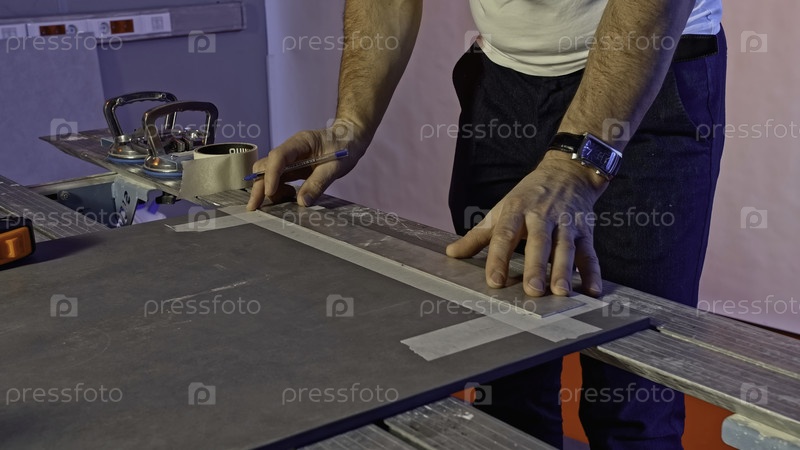 Ключевое изображение столярных работ на мастерской.Креативное.Место измерения рабочего для резки