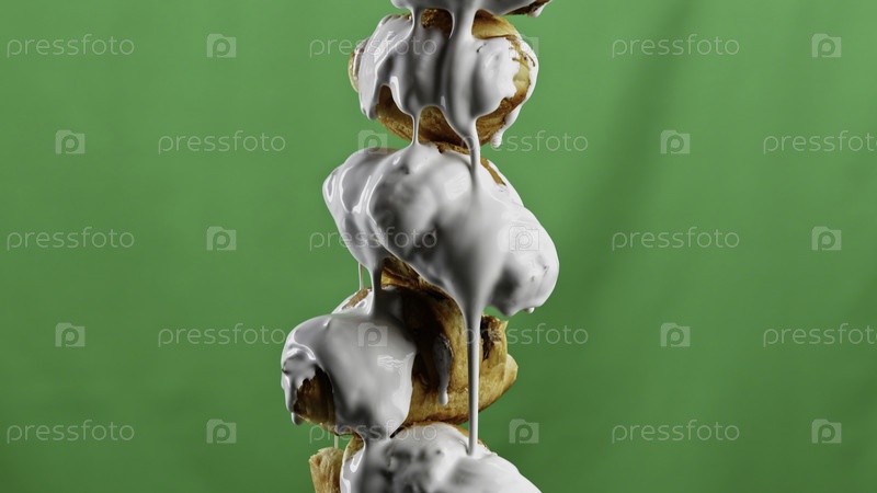 Концепция десертной кухни на зеленом фоне. Клип из запасов. апельсины и сладкие печенье с маслом, покрытые белым сладким кремом