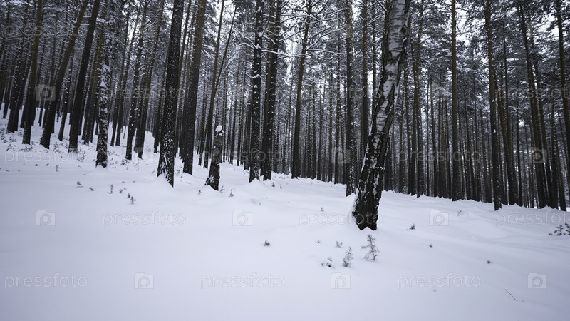 Вид зимнего леса с поворотами камеры. СМИ. Вид камеры вокруг вас в зимнем лесу. Поворачивание камеры в диком лесу в зимний день