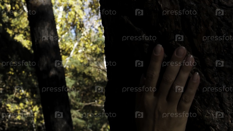 Пейзаж в ярком солнце. Движение. Сдвигающаяся рука на густом дереве с зеленым фоном позади. Высококачественная запись 4k