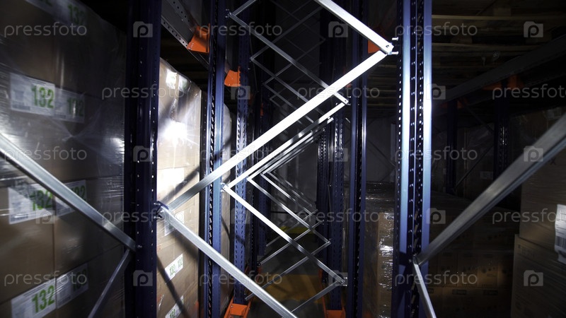 Сербия - Белград, 25 августа 2022: склад розничной доставки полный полок с товарами в картонных коробках