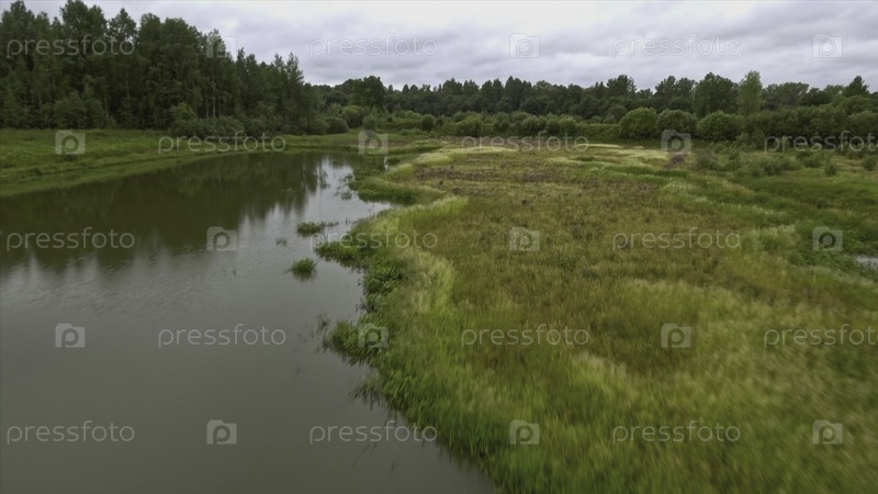 Вид сверху на реку с болотом в лесу. Скриншоты. Прекрасный пейзаж с болотным ландшафтом при пасмурной погоде. Таинственный ландшафт болота