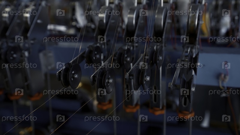 Производство медного проволочного кабеля в виде катушек на металлургическом сталелитейном промышленном заводе.Креативное.Машина для пряжения металлических проволочных спин