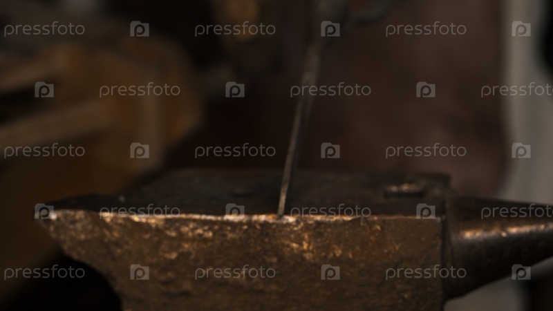 Тяжелая работа с железом. СМИ. Кузнец, который работает на расщепленном огне для деформации железа