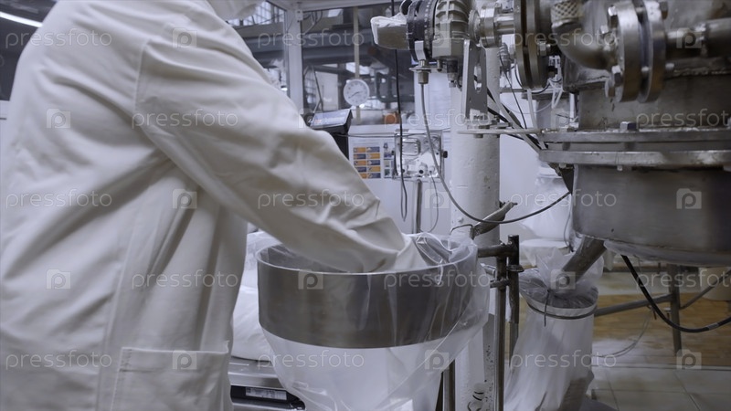 Промышленный опыт на пищевой фабрике. Клип. Работник в форме и маске, а также профессиональное оборудование