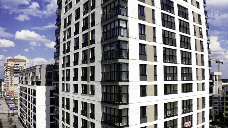 Фасад нового многоэтажного жилого здания. Фотоснимки. Концепция архитектуры