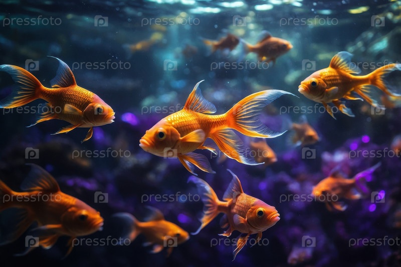 Генеративная ИИ Фантастические цветные рыбки плавают в глубине моря, аквариум водный крутые животные в воде