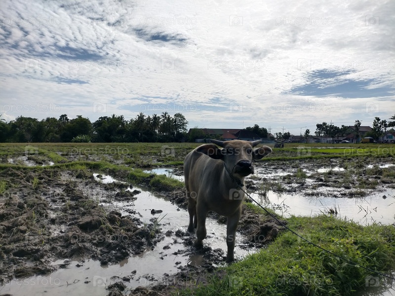 Рисовое поле , буффало. корова ,бык