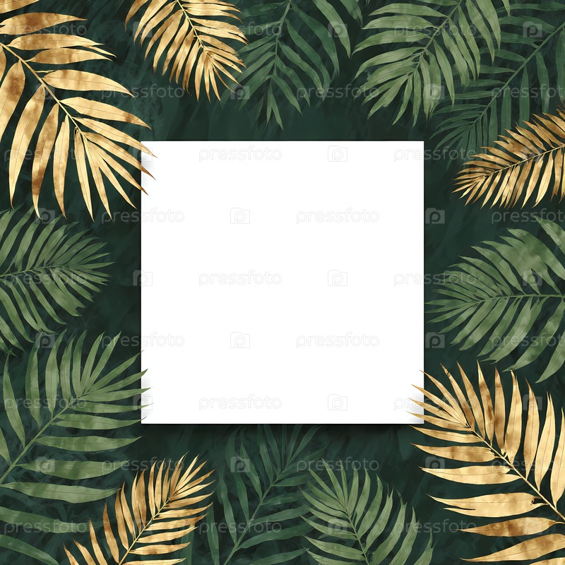 Яркие тропические листья создают пышный фон для пустого холста, приглашающего к творчеству и вдохновению в ботаническом раю