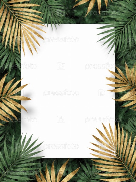 Примите тропические вибрации с пышными листьями, обрамляя пустой холст в ожидании расцвета творчества в ярком раю, наполненном элегантностью природы