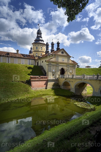 Несвижский замок с мостом и отражением в воде, Беларусь