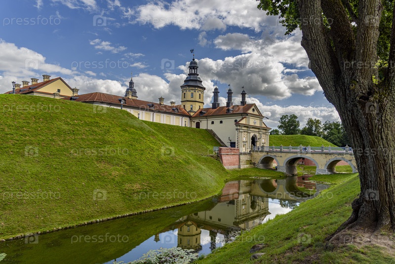 Несвижский замок с мостом и отражением в воде, Беларусь