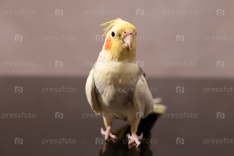 Портрет попугая корелла с розовыми щеками и туфлей на голове