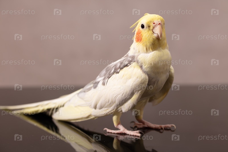 Портрет попугая корелла с розовыми щеками и туфлей на голове