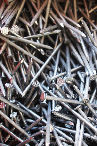 Строительные гвозди на близком расстоянии
