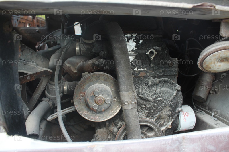 Близкий план ржавого автомобильного двигателя