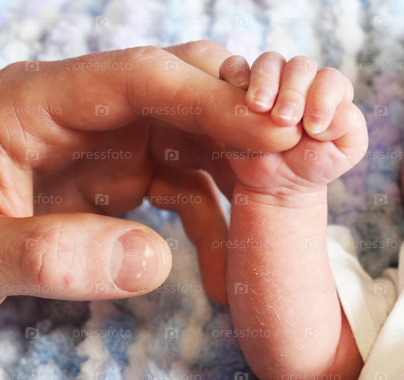 Малыш держит папу за палец в ближайшем плане