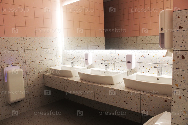 Область мойки в общественном туалете.Современный дизайн